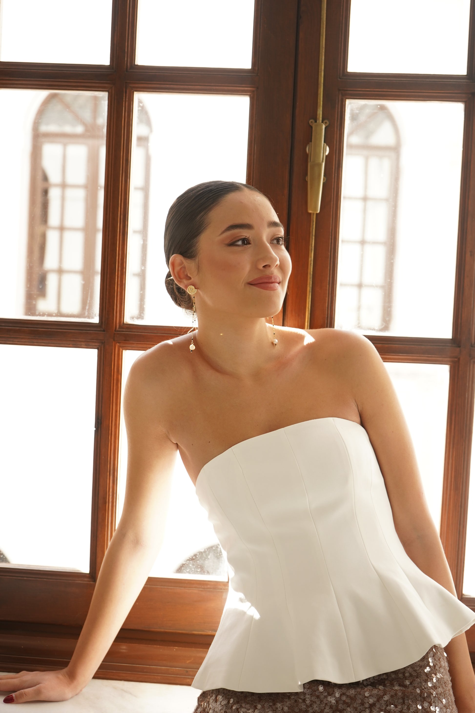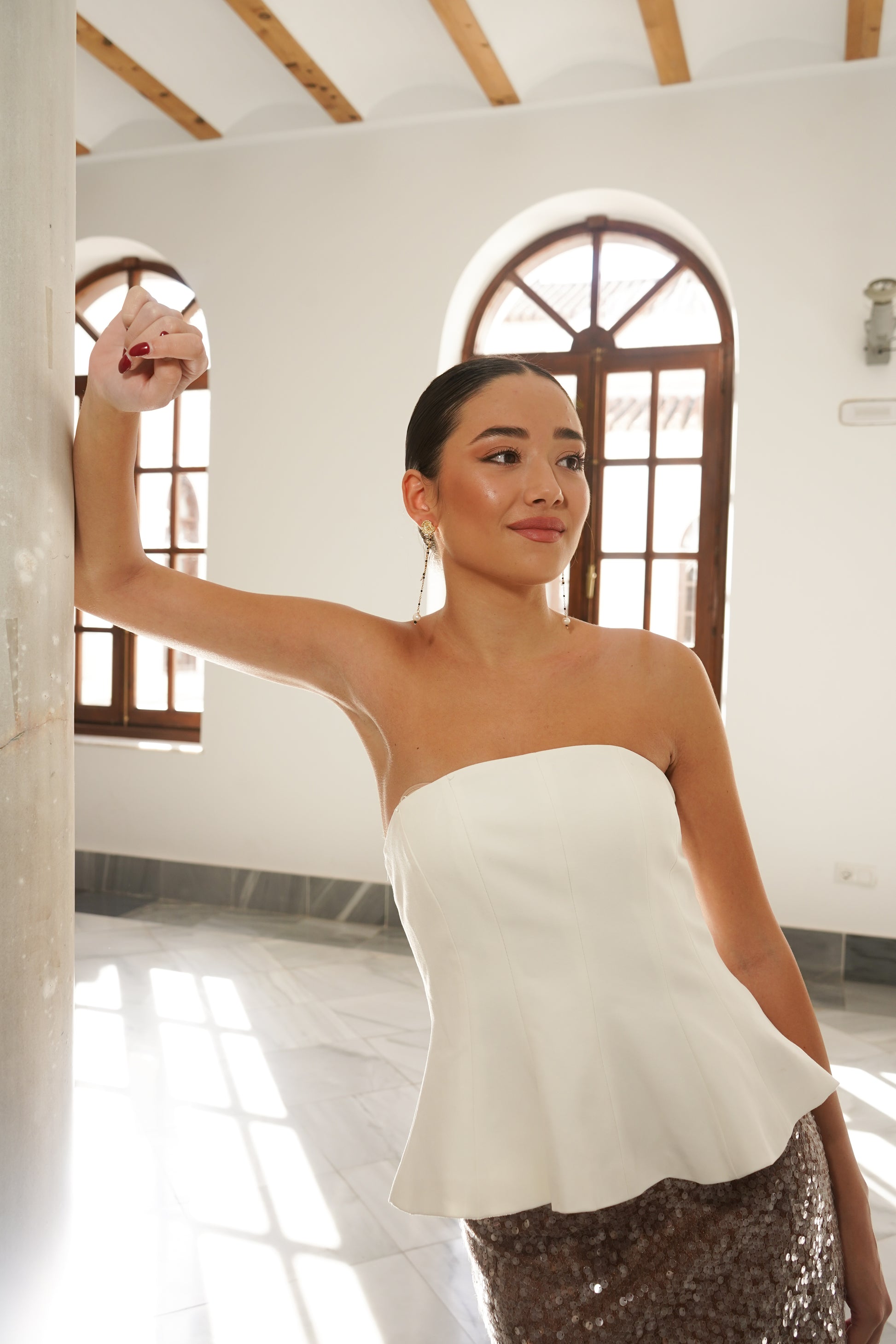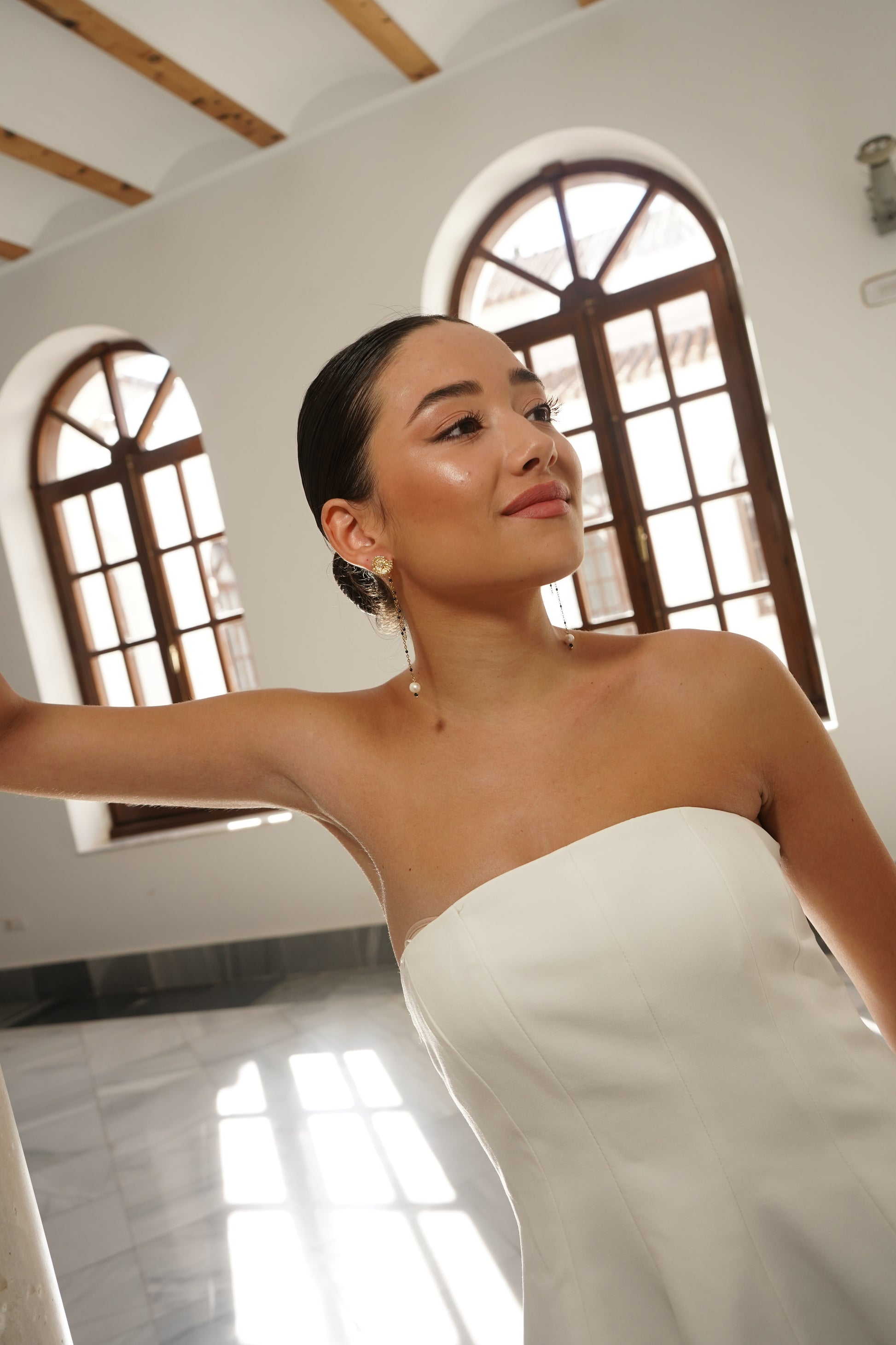 Un pendiente estilizado y favorecedor, ideal para invitadas, eventos especiales o para elevar un look sencillo con un detalle elegante y cuidado. P